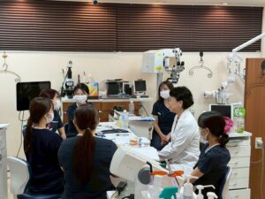 こんにちは 歯科衛生士の鴨谷です 先日の濱田先生の院内セミナーでは 2年生の実技テストと 保健指導についての講義でした。 2年生のテストでは3年目以降の先輩が 患者さん役になり施術を受けました。わたしも実際にクリーニングをしてもらいましたが、 以前よりパワーアップした後輩に すごく頼もしい気持ちになりました(o^^o) また保健指導については メインテナンスでの歯ブラシ指導の伝え方や、 物品について詳しくお話を聞くことができました。 先生のセミナーでは毎回発見と学びがあり すぐ活かせることが多くとても勉強になります! 明日以降の診療に取り入れようと思います、 先生今回もありがとうございました!